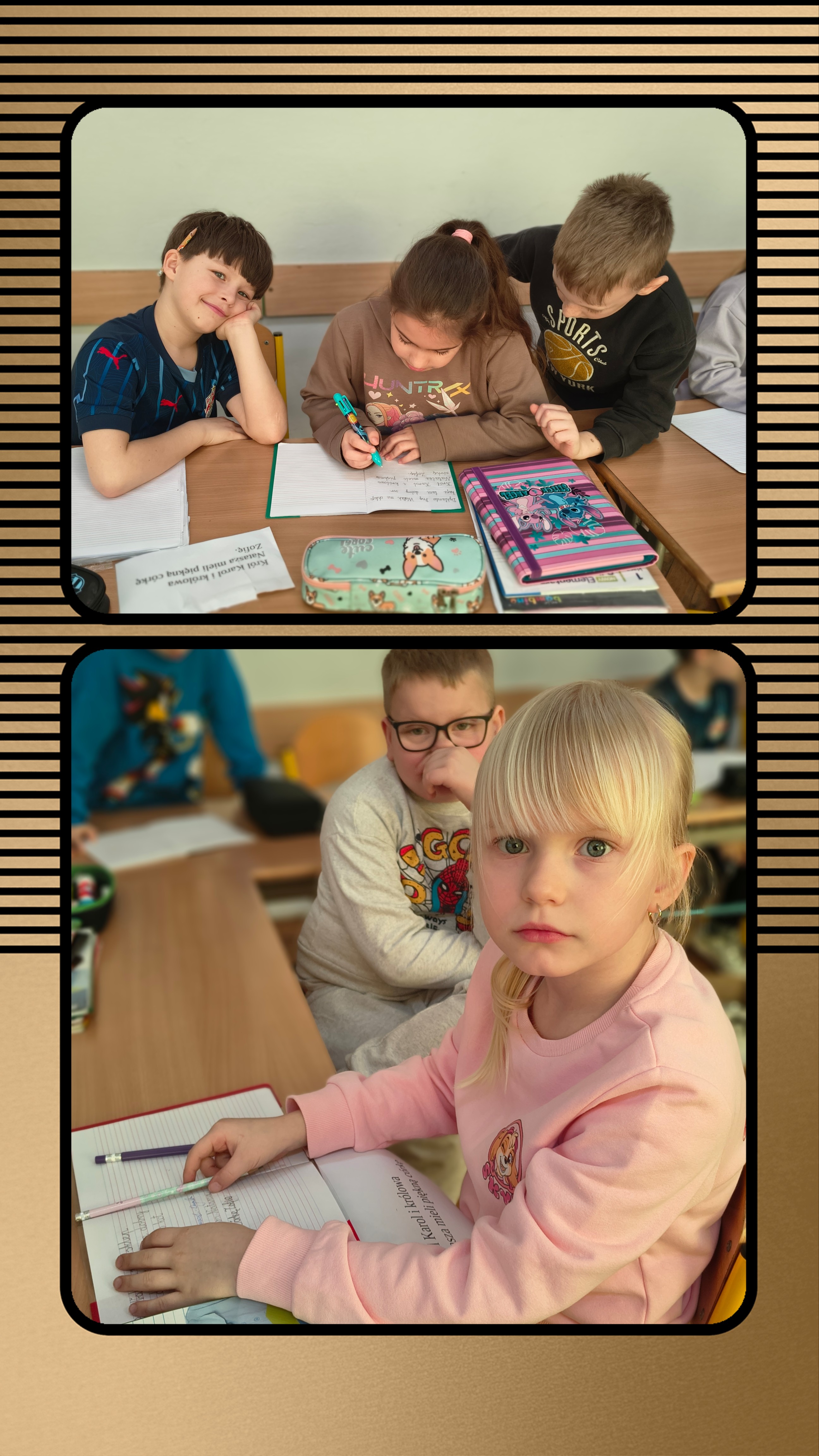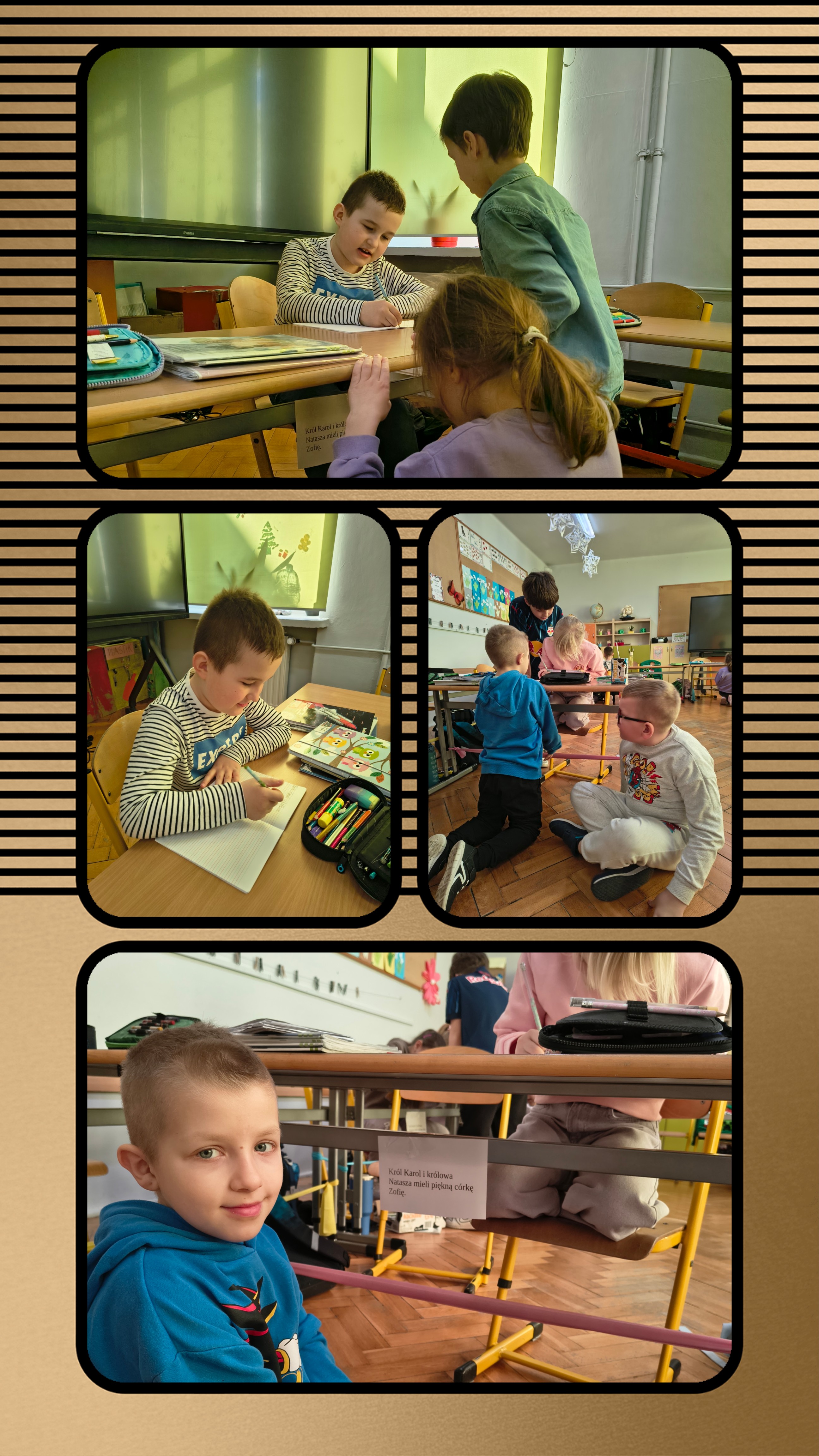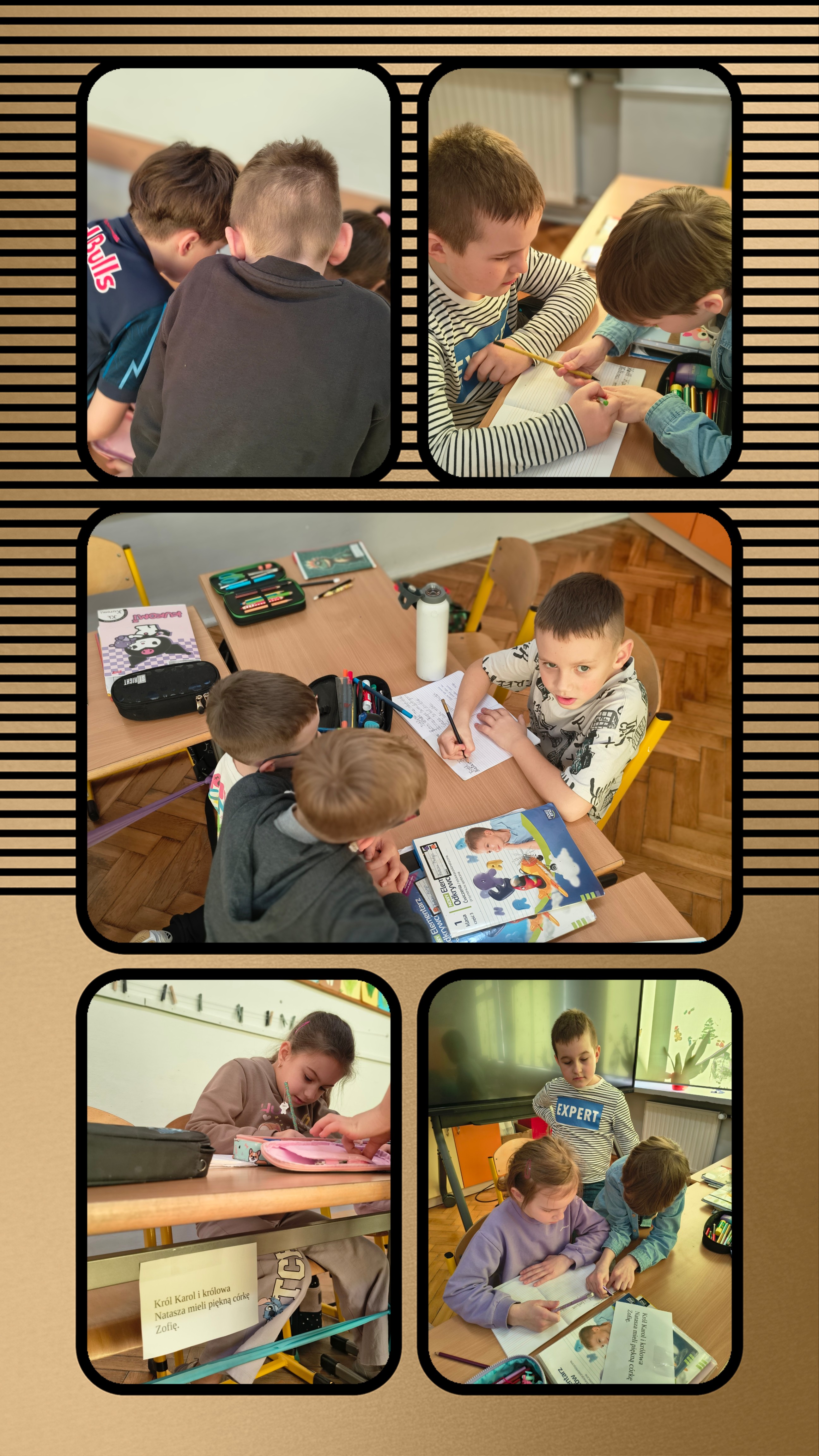 Kiedy wszyscy skończyli, odkleili kartki i sprawdzali, jakie błędy popełnili, a następnie je poprawiali.