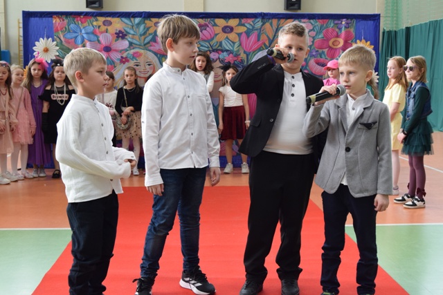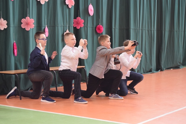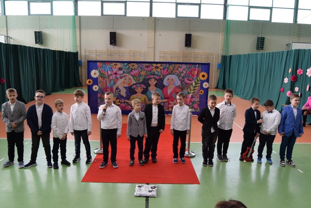 Drugoklasiści zaprezentowali piękną inscenizację słowno-muzyczną, która w ciekawy i często bardzo humorystyczny sposób pokazała, jak ważną rolę w świecie odgrywają kobiety. Młodzi artyści z ogromnym zaangażowaniem wcielili się w swoje role, a ich występ był prawdziwy, naturalny i pełen dziecięcej radości. Widać było, że uczniowie świetnie ze sobą współpracują i dali z siebie wszystko, aby sprawić przyjemność wszystkim Paniom obecnym na sali.