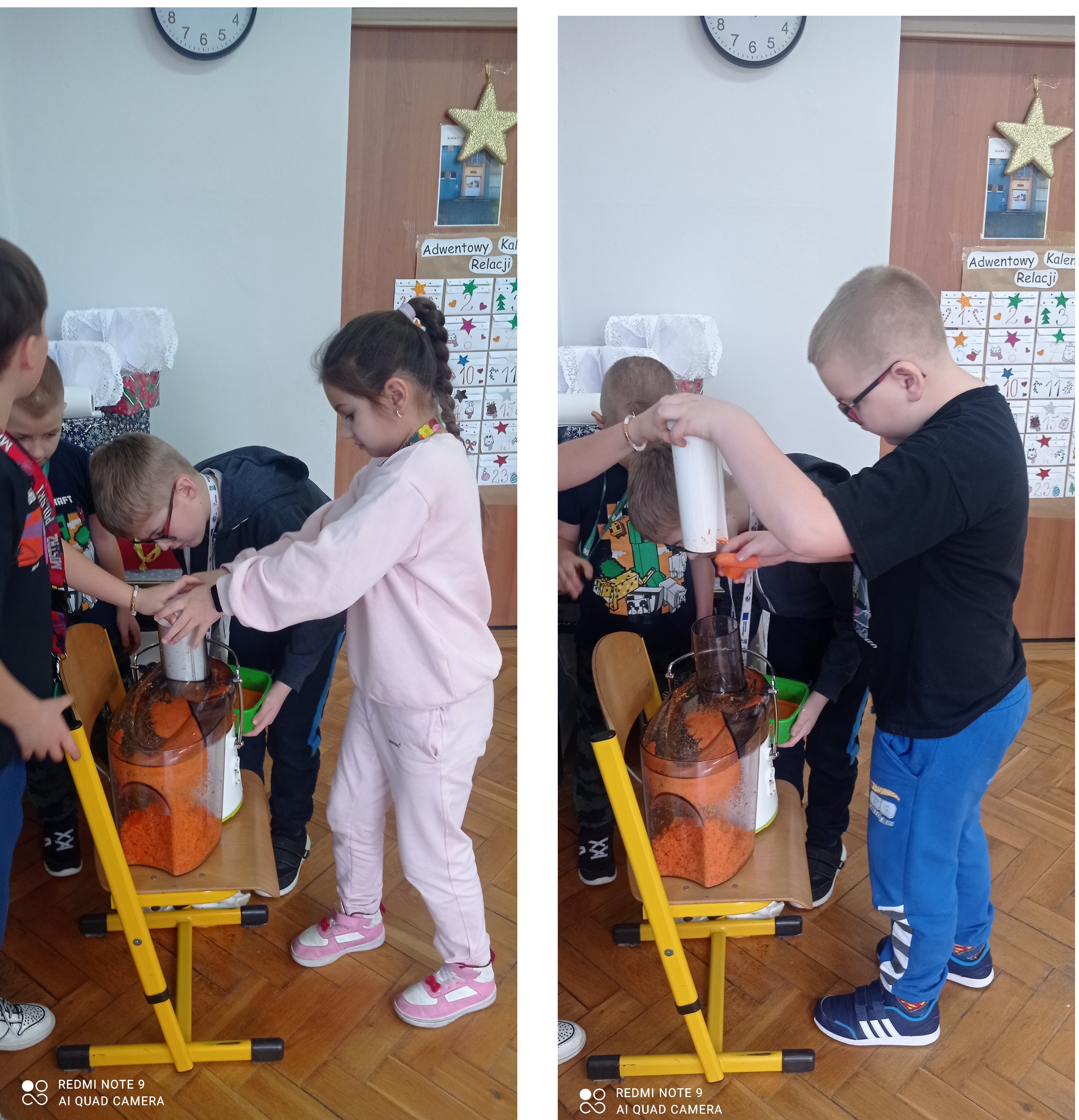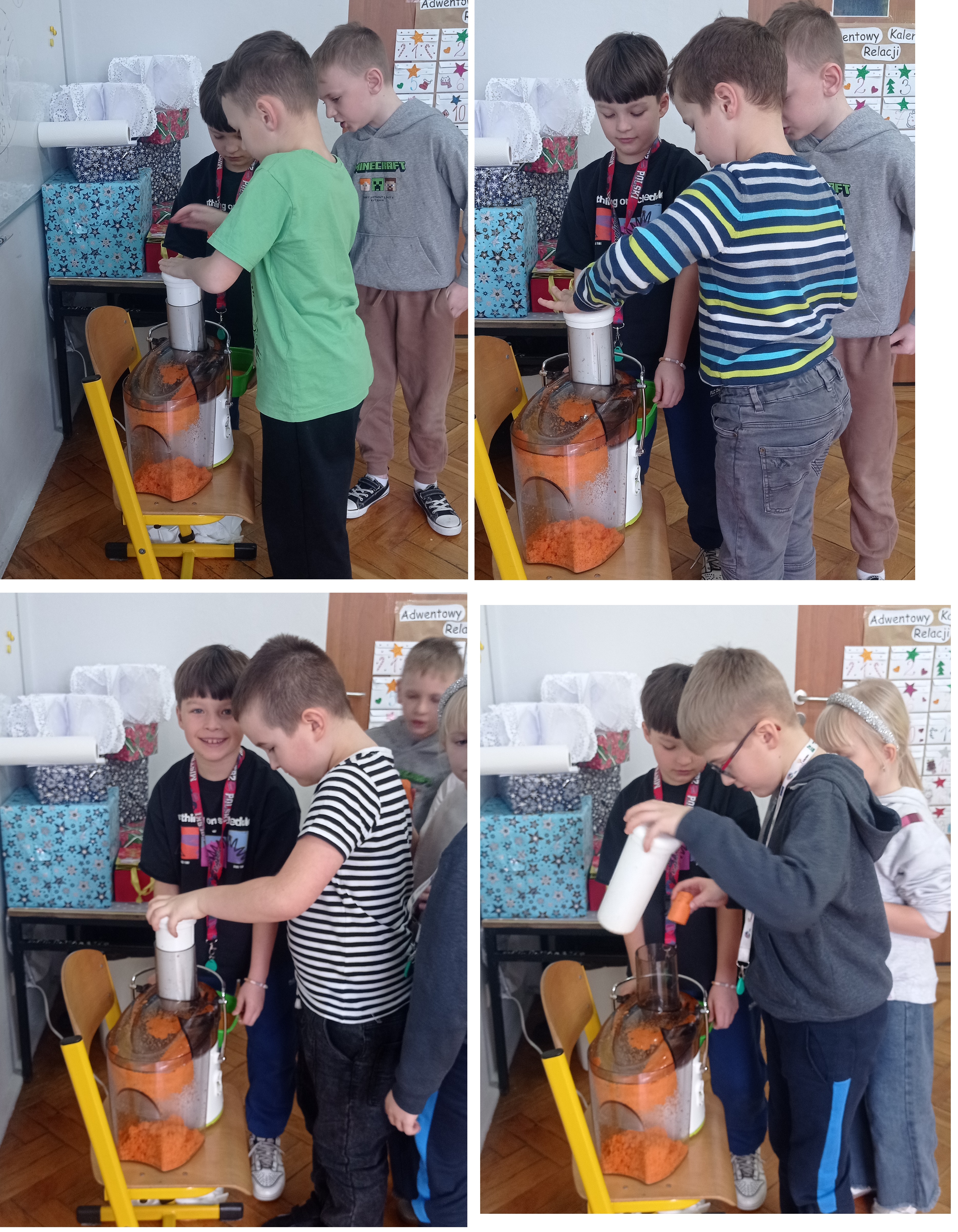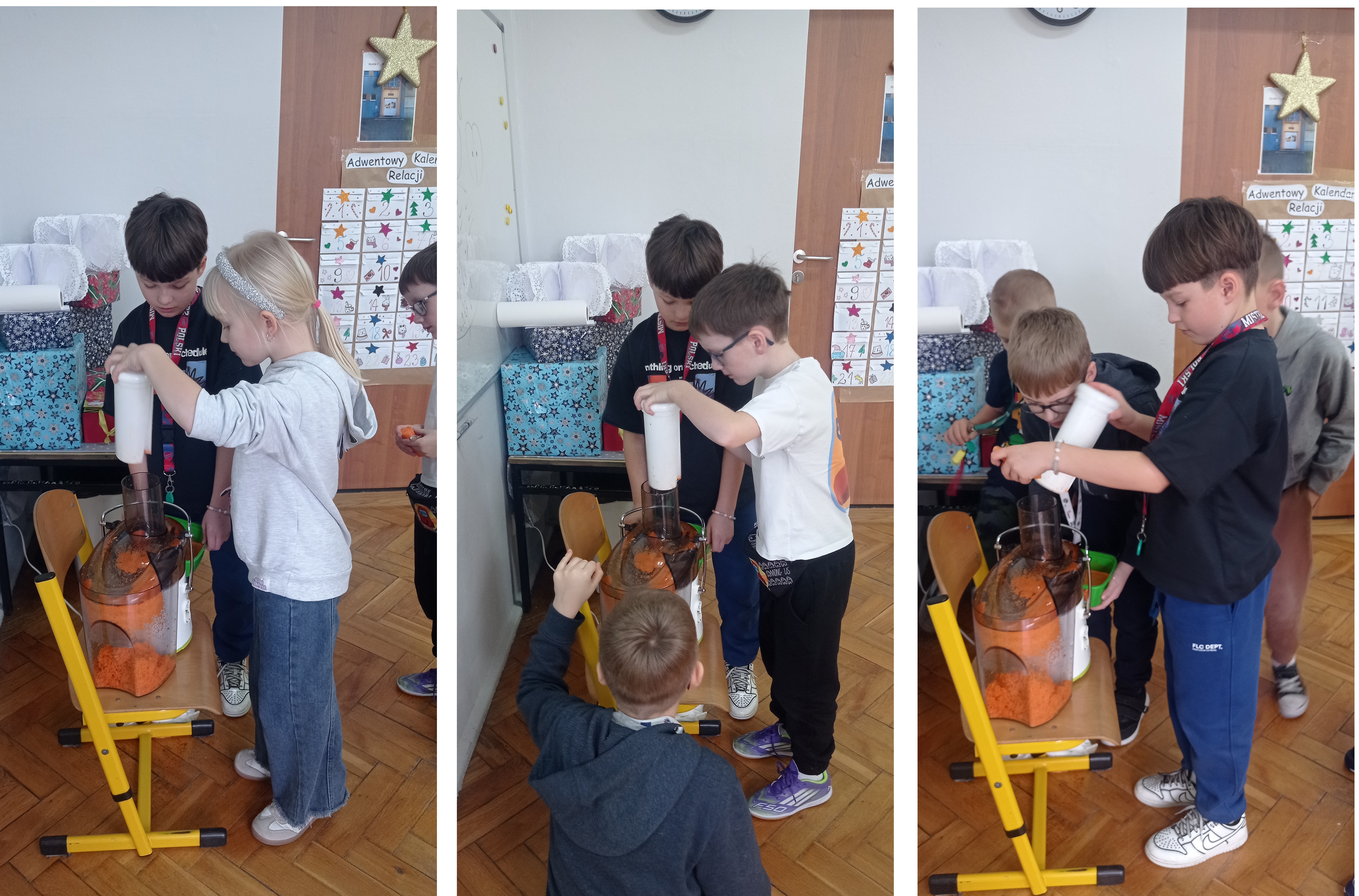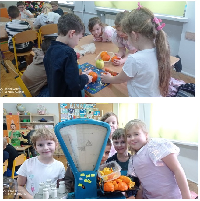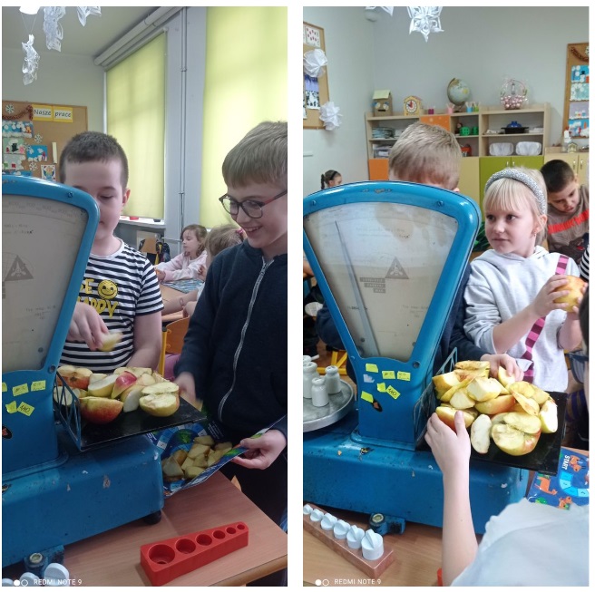 Uczniowie próbowali odważyć dokładnie kilogram owoców, przeprowadzali pasjonujące doświadczenia, samodzielnie formułowali wnioski, konstruowali wagi z wieszaków, a nawet wyciskali soki – wszystko po to, by znaleźć odpowiedzi na postawione pytania.