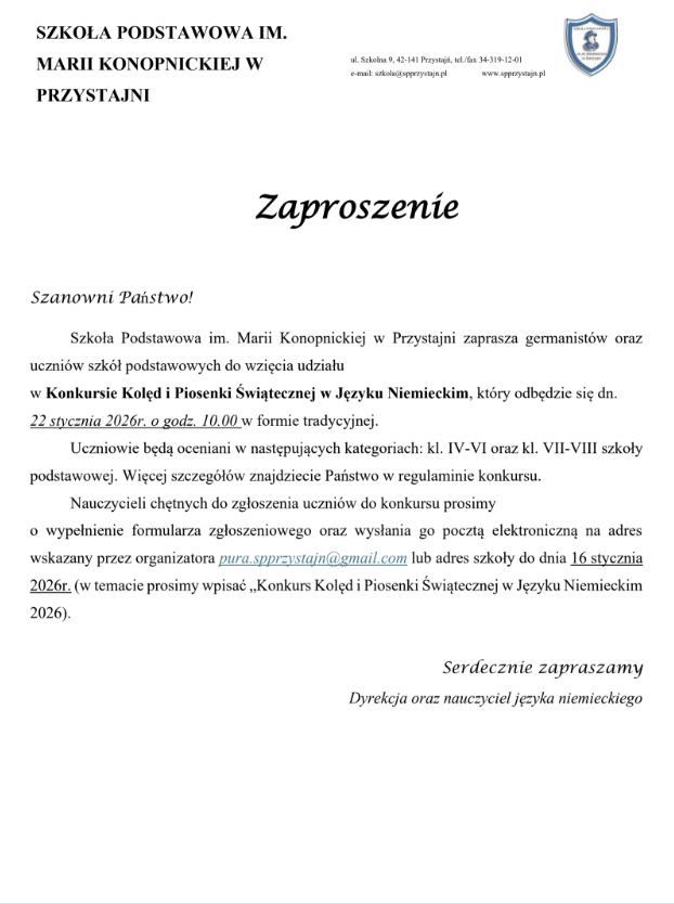 Serdecznie zapraszamy wszystkich chętnych do zgłaszania udziału w Konkursie kolęd i Piosenki Świątecznej w Języku Niemieckim