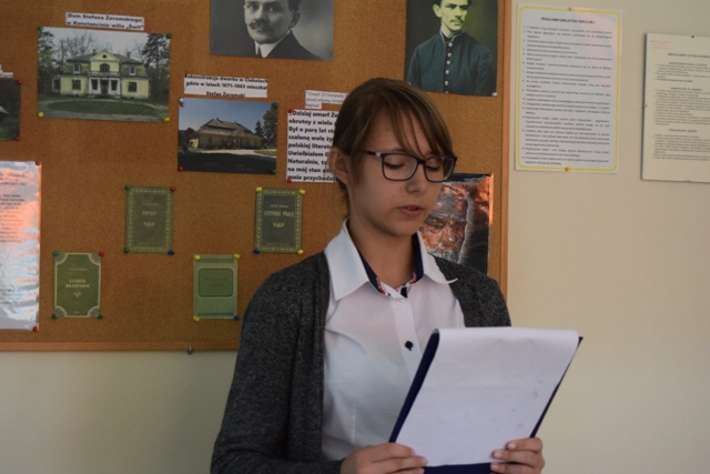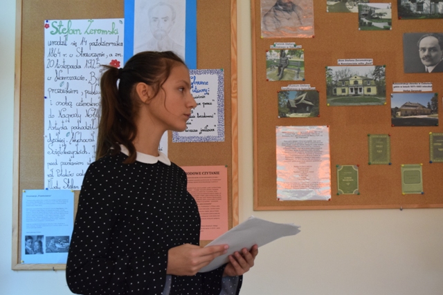 Wcześniej przygotowano gazetkę tematyczną poświęconą twórcy, a pięknemu czytaniu towarzyszyła w tle muzyka do filmu ,,Przedwiośnie” skomponowana przez Michała Lorenca.