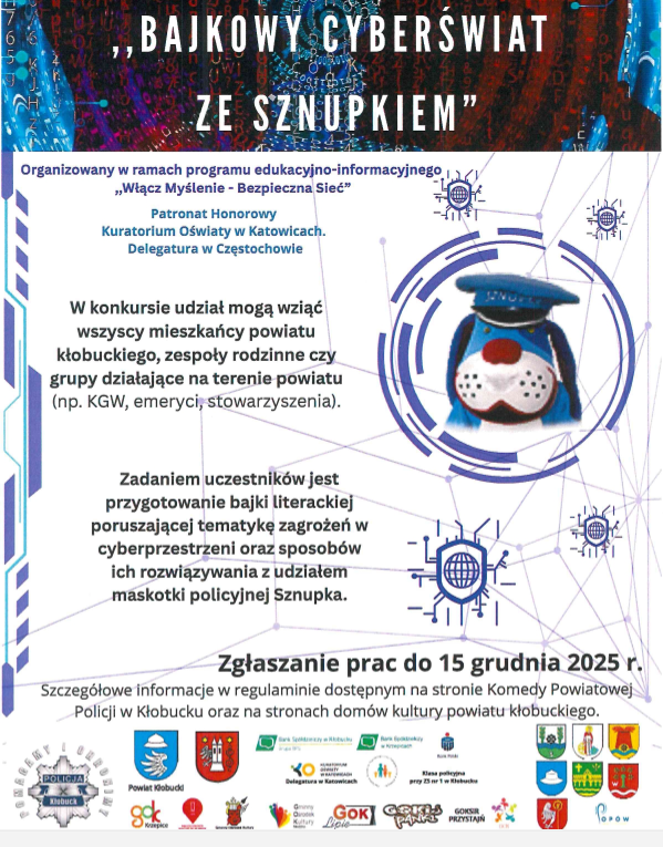 Zapraszamy do udziału w konkursie na Powiatowy Przegląd Literacki „Bajkowy Cyberświat ze Sznupkiem” organizowanym przez Komendę Powiatowej Policji w KłobucKU.