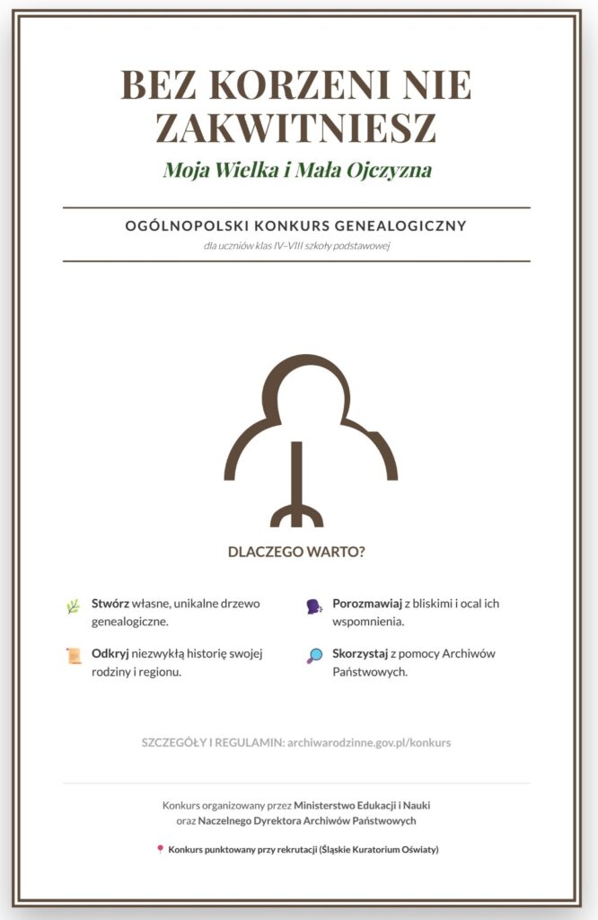 „Bez korzeni nie zakwitniesz. Moja Wielka i Mała Ojczyzna”, organizowanego przez Ministerstwo Edukacji i Nauki oraz Naczelnego Dyrektora Archiwów Państwowych.